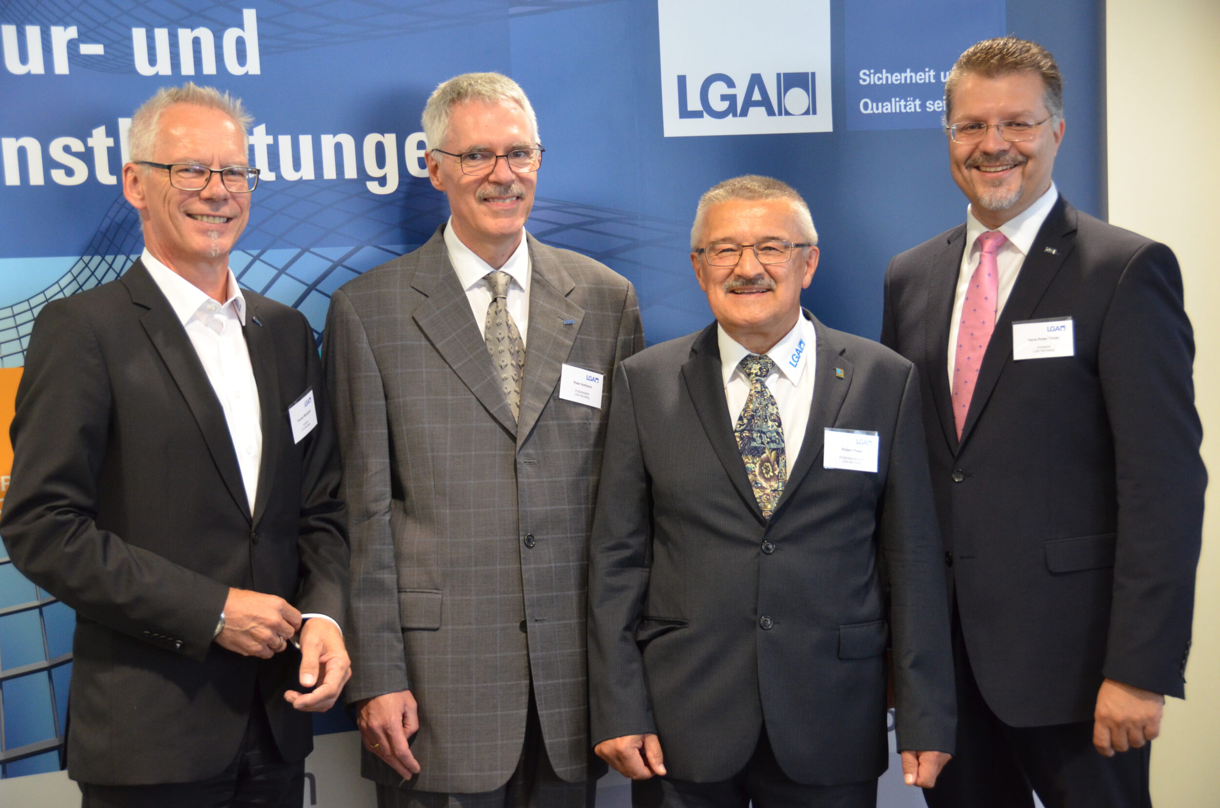 Wechsel bei der Leitung des Nürnberger Prüfamtes für Standsicherheit der LGA: Auf Robert Pleier, der das Amt seit dem 1.1.2000 innehatte, folgt Peter Hofmann. Gleichzeitig kam es auch zu einer Neubesetzung des Stellvertreters. Willibald Hermann ging bereits 2017 in den Ruhestand, sein Nachfolger heißt Edgar Görl. Die offizielle Stabübergabe erfolgte am Freitag, dem 13.7.2018 im Rahmen einer Feierstunde in der LGA in Nürnberg. Daniel F. Ulrich, Planungs- und Baureferent Nürnbergs, sprach das Grußwort für die Stadt; Prof. Dr. Norbert Gebbeken, Vorsitzender der Bayerischen Ingenieurkammer Bau, hielt den Festvortrag.