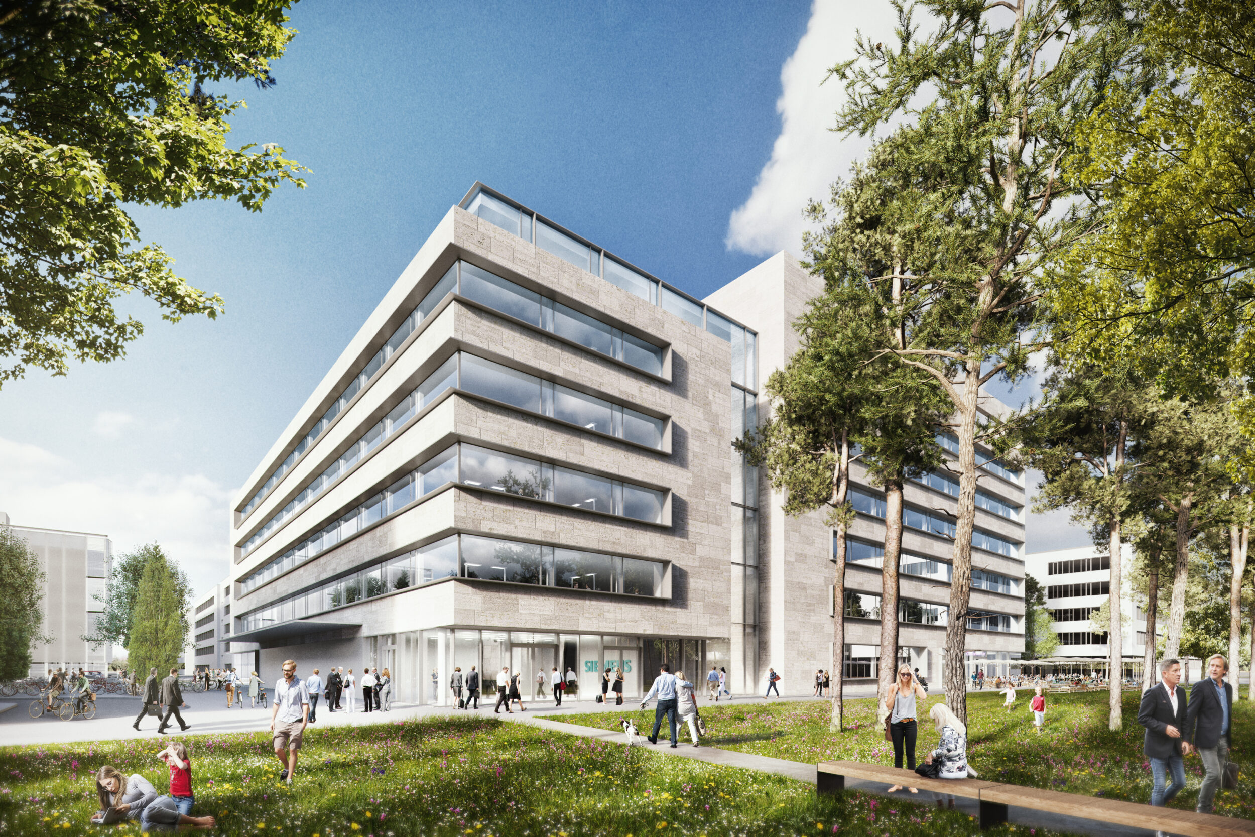 Auf dem ehemaligen Siemens Forschungsgelände im Süden Erlangens entsteht bis 2030 nicht weniger als ein durchkonzipierter neuer Stadtteil „mit attraktiver Campusstruktur“. Modul 1, bestehend aus acht Gebäuden und drei Parkhäusern, steht vor der Vollendung. Auf dem Gelände von Modul 2, das in Holzhybridbauweise gebaut wird, haben die Abrissarbeiten bereits begonnen.