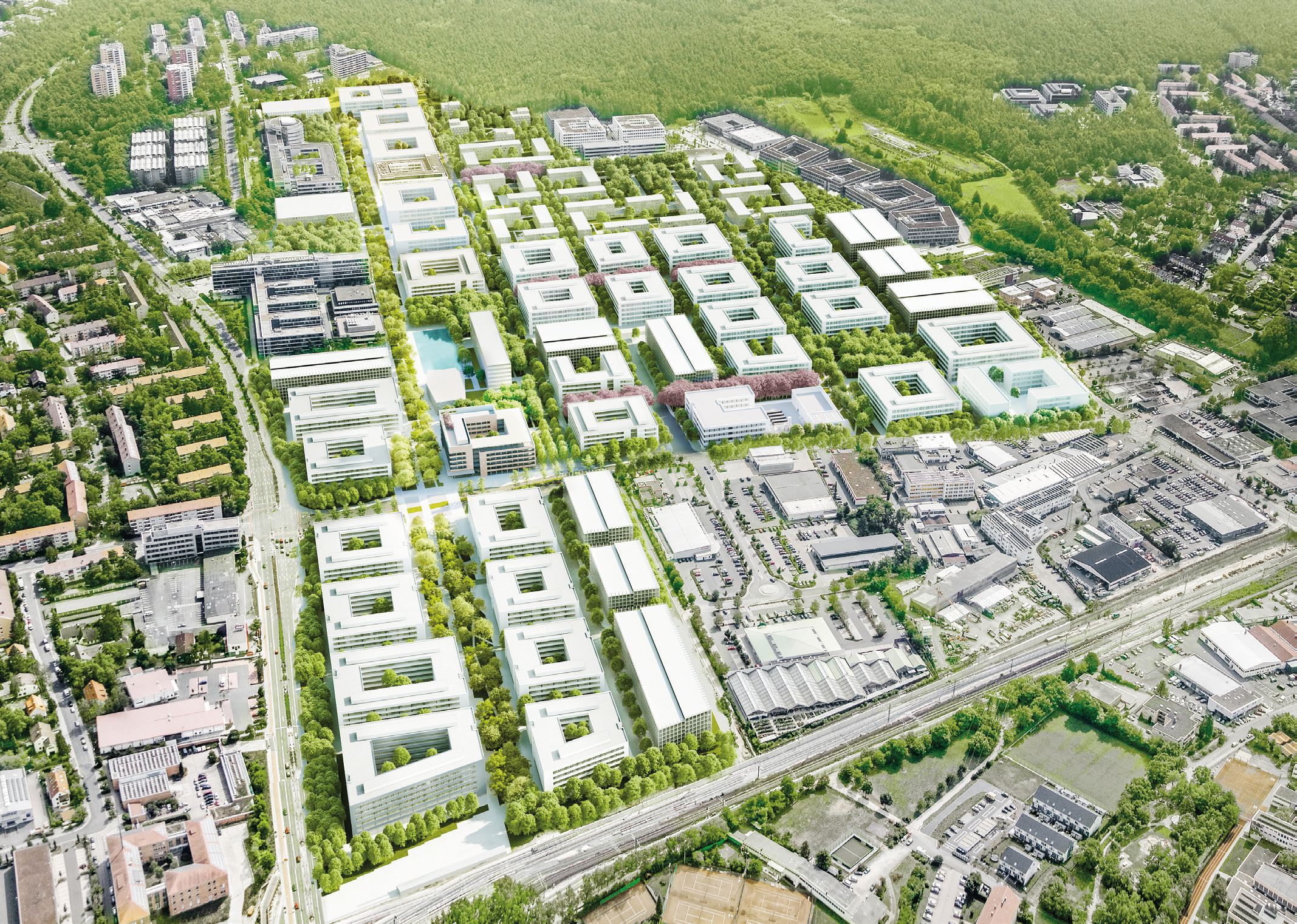 wird in den USA für Quartiersentwicklungen meist außerhalb der Stadt mit akademischem Charakter genutzt, der Klassiker sind Lehr- und Wohngebäude für Lehrer und Studenten mit viel Grün dazwischen. Für den Siemens Campus bedeutet der Begriff vor allem eine Öffnung des Firmengeländes: Wo heute noch Pförtnerhäuschen, Schranken, Zäune das Areal begrenzen, werden alle Barrieren um das Gelände und zwischen den Gebäuden fallen. In modularer Bauweise werden die meisten bestehenden Quartiere durch neue Bauten ersetzt. Die weiteren Module werden nach und nach errichtet und bezogen.