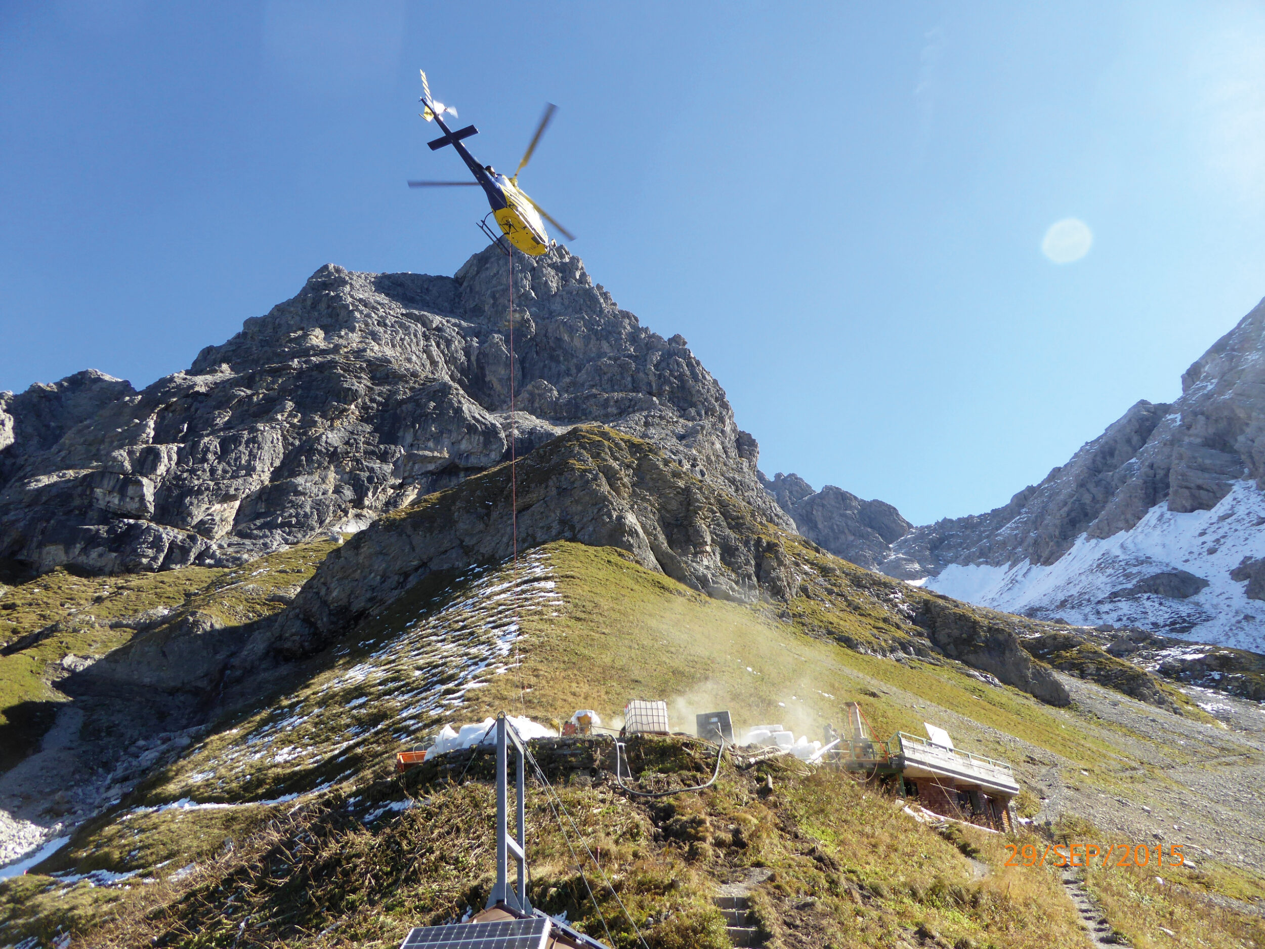 2015 lautete die Vorgabe für den Neubau die komplette Versorgung mit regenerativer Energie. So wurde das Dach mit 100 durchscheinenden PV-Modulen bestückt, die eine entsprechend große Batterieanlage aus ihren 30 KWp speisen. Überschuss wird in drei große 1000 Liter Warmwasserspeicher eingeleitet oder in die Heizkreise der Waschräume geführt. Das System wird durch eine kleine Wasserturbine unterstützt, die in die frühere Löschwasserleitung eingebaut wurde. Die Wärmeabgabe der Kühlgeräte wird zur Erwärmung des Trockenraumes genutzt. Alle Abwässer werden weiter in der vorhandenen, biologischen Kläranlage bearbeitet. Keller und Rückwand wurden betoniert, der Rest besteht aus Vollholzelementen. Das Landesamt für Umwelt, welches vom zuständigen Landratsamt eingeschaltet wurde, befasste sich mit den vor Ort herrschenden Geogefahren und dem Lawinenschutz.