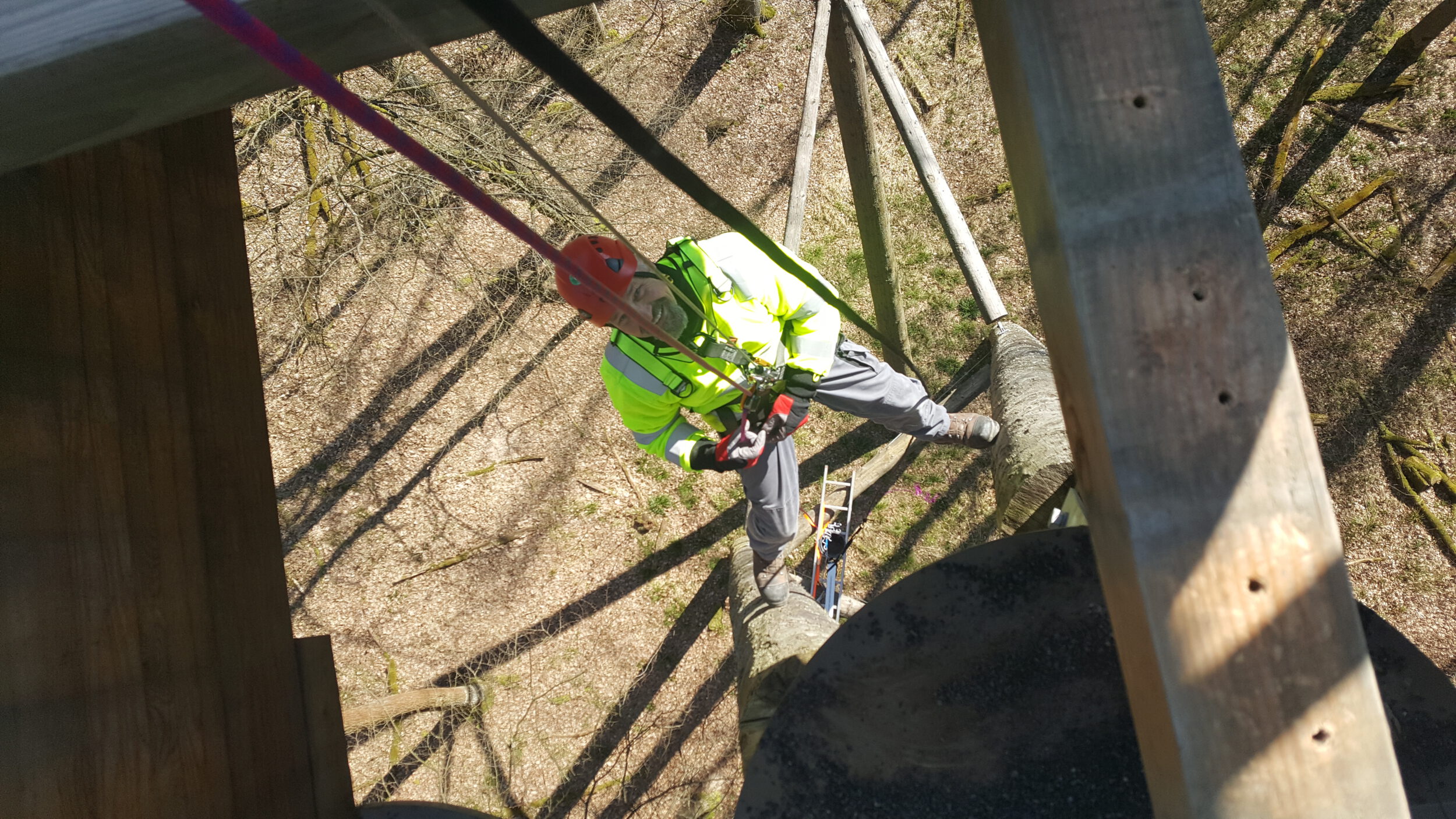 Um das Bauwerk gründlich zu prüfen, sind sehr gute Kletterfähigkeiten erforderlich. Für Podlech, Sportkletterer seit seiner Jugend und zusätzlich bei der Bundeswehr ausgebildet, ist das nichts weiter als eine willkommene Herausforderung.
