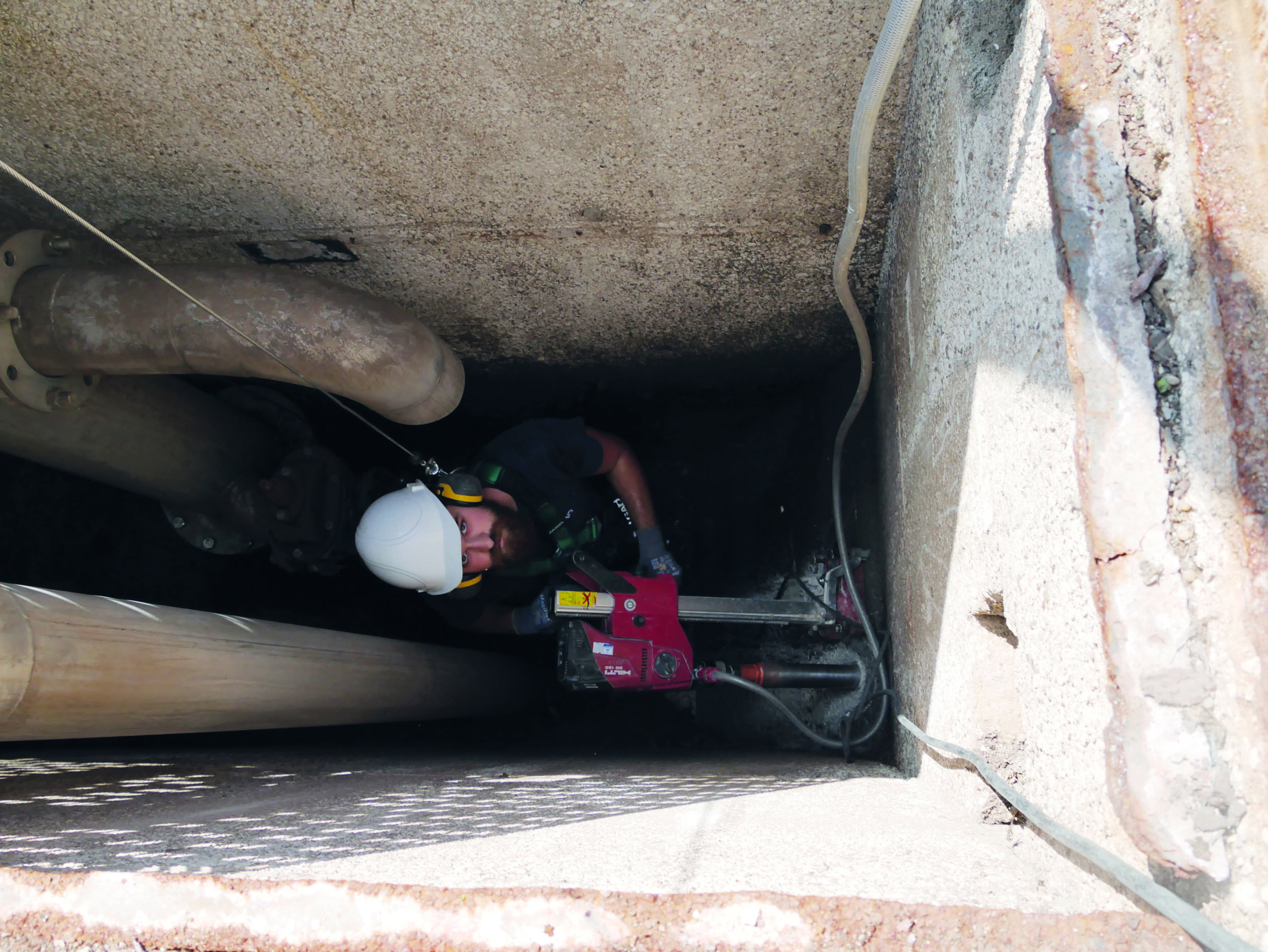 BEI DER BAUWERKSPRÜFUNG IN KLÄRANLAGEN SIND MITARBEITER AUCH IN BEGLEITUNG VON FAULTURMTAUCHERN UNTERWEGS