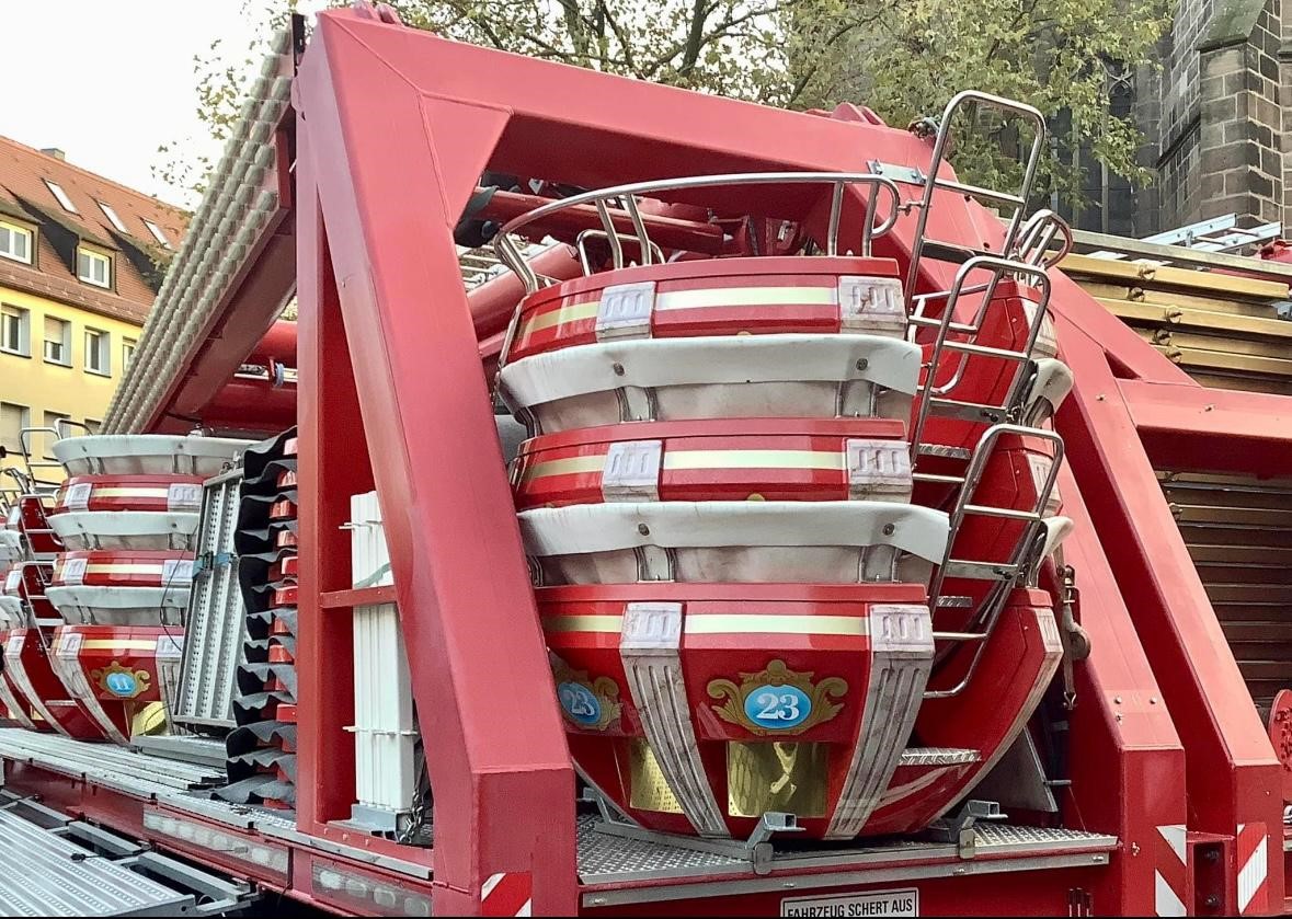 Von Beginn an war klar: Das Riesenrad darf nicht auf der Röhre für die U-Bahn stehen. Die vier Auflagepunkte des knapp 40 Meter hohen Fahrgeschäfts mussten mindestens 2,50 Meter von der unterirdisch verlaufenden Röhre entfernt stehen. „An den Eckpunkten wurden 700 Kilonewton Kraft abgetragen, das entspricht 70 Tonnen“, rechnet Bauingenieur May vor. Das Riesenrad selbst stand auf vier Lastverteilerplatten, die Stellen wurden exakt bestimmt. Das Fahrgeschäft besaß ein aktuelles Prüfbuch und deshalb war die übliche „Fliegende-Bauten-Prüfung“ nicht erforderlich.